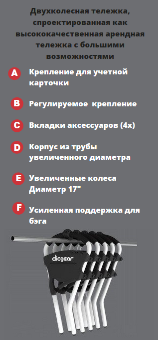 Усовершенствованная в 2019 году тележка Clicgear Model 6 Resort Cart - это совершенно новое направление для рынка арендного оборудования. Мы попытались сконструировать что-то, что легко собирается и обслуживается при использовании в качестве тележки для аренды. Тележка Clicgear 6 превосходно справляется с этой ролью.